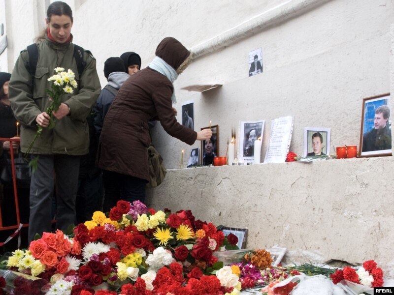 Люди приходили к месту убийства Станислава Маркелова и Анастасии Бабуровой, приносили цветы и зажигали свечи