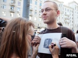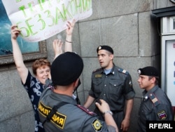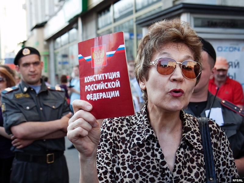 Акция приобрела спонтаный характер. Кто-то показывал Конституцию России, напоминая о праве на собрание...