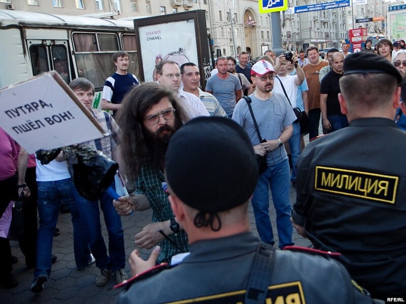 Акция "День гнева" за отставку мэра Москвы Юрия Лужкова началась с задержания организаторов: лидера "Левого фронта" Сергея Удальцова и правозащитника Льва Пономарева.