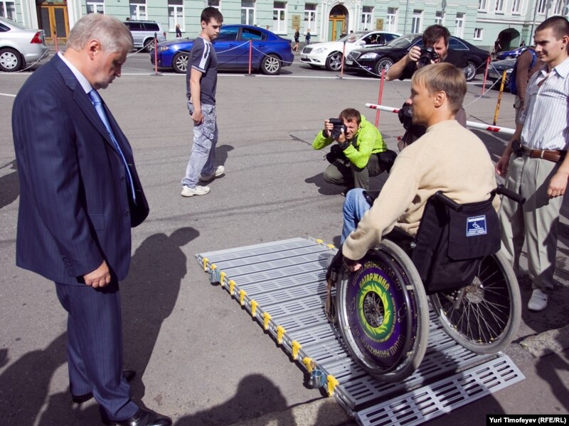 "Пойдите вы в следующий раз к мэрии, подайте петицию," – посоветовал участникам пробега Уполномоченный по правам человека Владимир Лукин. Прав, наверное, Владимир Петрович, хорошо знающий материал, с которым имеют дело российские граждане: надо просить о милосердии к инвалидам, желательно униженно.