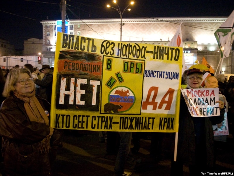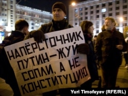 В Москве на Триумфальной площади прошла акция движения "Стратегия 31" в защиту 31-й статьи конституции, гарантирующей гражданам свободу собраний.
