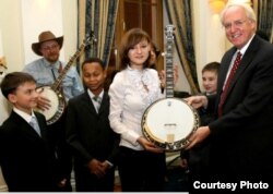 Солистку обнинского детского ансамбля «Веселый дилижанс» 15-летнюю сироту Лизу Карпачеву наградили американской премией Брайана Фризена, как молодого перспективного музыканта, играющего на банджо. Эта награда впервые была вручена исполнителю за пределами Соединенных Штатов, а представляет она собой великолепный пятиструнный инструмент от калифорнийской фирмы Deering Banjo Company. На нем сейчас Лиза Карпачева и играет. Премию Брайана Фризена вручил Лизе Карпачевой посол Соединенных Штатов в России Джон Байэрли. Церемония происходила в исторической резиденции посла, в московском Спасо-Хаусе. Посол Лизе запомнился таким: