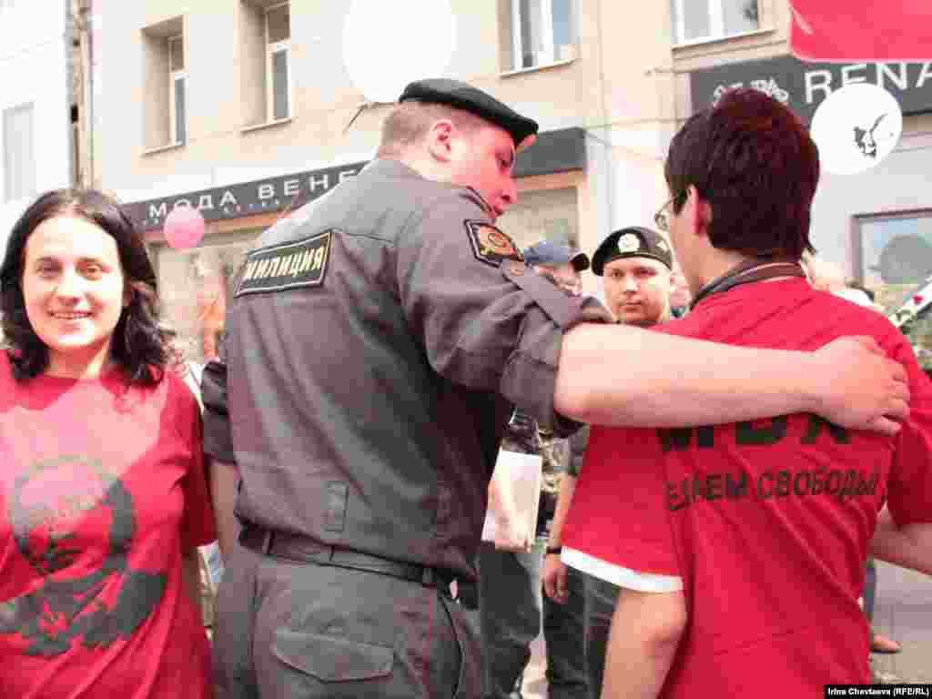 Несколько десятков человек с воздушными шарами и в майках с портретом Михаила Ходорковского колонной пошли по Арбату 26 июня, раздавая подарки прохожим. Таким образом они поздравили Ходорковского с днем рождения. Сотрудники полиции сопровождают колонну, некоторые участники акции были задержаны.