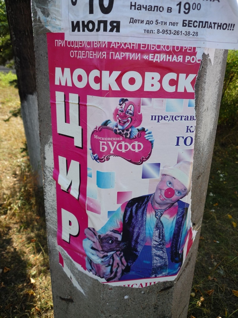 У здания Вельского районного суда, прямо напротив памятника Ленину разбит шатер цирка-шапито. Представления, как следует из афиш, начнутся завтра и пройдут при поддержке Архангельского областного отделения партии "Единая Россия". Но мы, вероятно, на премьеру не попадем - она начнется одновременно с заседанием суда.