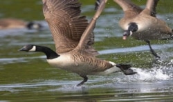 Владимир Морозов: У канадских гусей могучие глотки. Их слышно за километр. Часто ты их еще не видишь, а уже слышишь. Но добыть такого крикуна не просто. Вставать надо в полчетвертого утра. До Харисбургских озер больше часа езды. И не от города Нью-Йорка, а от деревушки Коринф, где у меня коттедж. Это в 320 километрах к северу от Нью-Йорк в горах Адирондак. В пять часов утра на озере еще полная темень. Включаю фонарик на бейсбольной кепке, и при его свете сгружаю с ''Тойоты'' пластмассовую байдарку. Изредка со мной бывает мой приятель Дэйв.