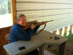 А это деликатный голосок малокалиберной винтовки. Здесь ее называют – 22-я, по калибру. Из нее палят на 50-метровом полигоне.