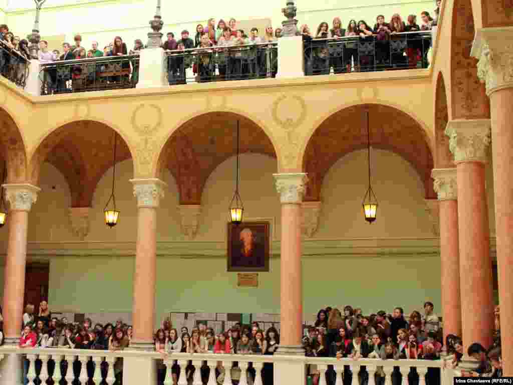Russia--Visit of Russian President Dmitry Medvedev at the The Faculty of Journalism at Lomonosov Moscow State University, MSU, 20Oct2011