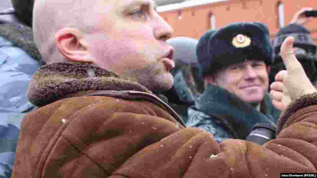 Сергей Удальцов после празднования масленицы беспрепятственно спустился в метро и там со своими сторонниками продолжил выкрикивать лозунги