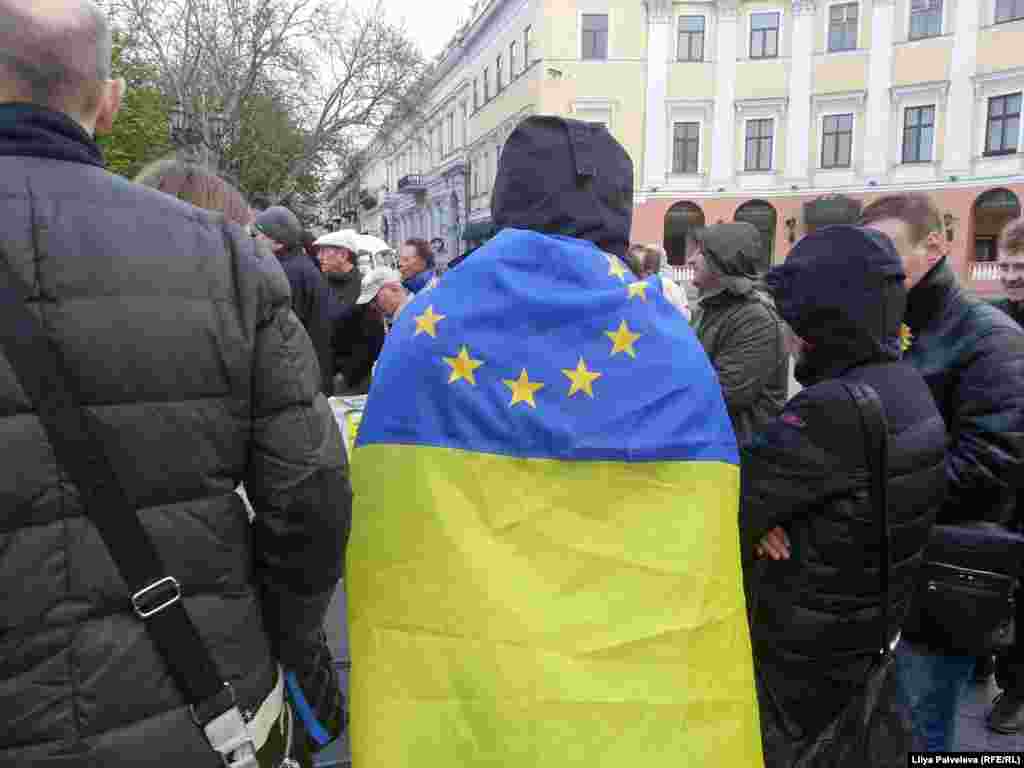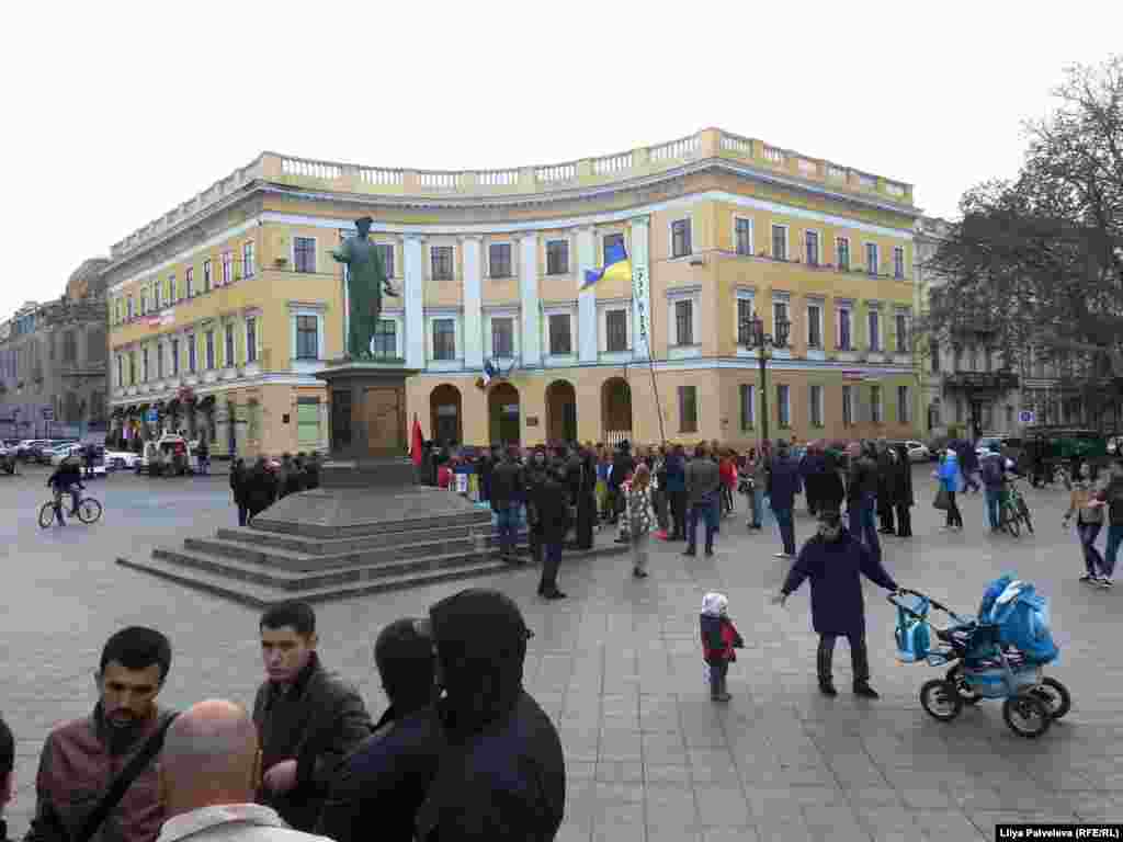 На Приморском бульваре, у памятника Дюку Ришелье - место встречи и митингов сторонников евроинтеграции Украины. Пророссийски настроенные граждане разбили палаточный лагерь на площади Куликово поле у здания областной администрации
