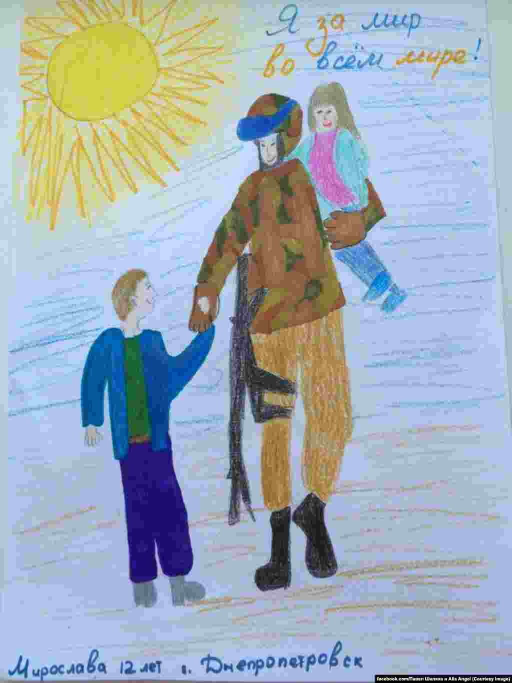 Российский комитет солидарности с Майданом собирает на своей странице в Facebook рисунки детей из разных стран мира против войны на Украине. Рисунки будут отправлены украинским солдатам на передовую, а некоторые из них заменят плакаты на антивоенных акциях протеста.