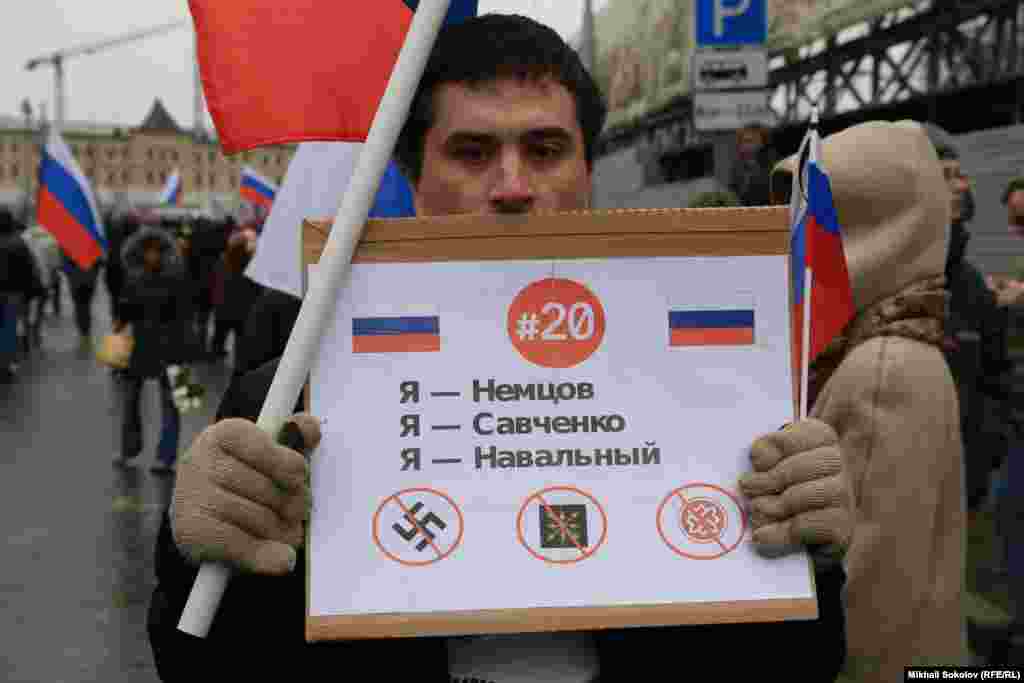 В Москве прошел многотысячный марш памяти убитого лидера демократической оппозиции Бориса Немцова. Участники шествия несли плакаты с его изображением. Немцов был застрелен в ночь на субботу в центре Москвы.