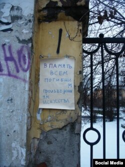 – Да, но это было не в память конкретной работы, это были совместные действия нашей группы и еще группы ЖКП, это наши друзья, художники из нашего города. И у этой группы были претензии к начальству Худграфа, и у нас что-то было. И давно была идея похоронить Худграф, а мы, конечно, немножко обиделись на него, и, наверное, поэтому мы так радикально решили действовать. И когда мы венки развешивали, мы поставили подписи, к чему это было сделано. Чтобы люди понимали, что за венки. Венки были бутафорские, не выглядели как настоящие похоронные венки, мы их специально сделали такими. Это было в память обо всех погибших произведениях искусства, дань всему стрит-арту, который на улицах погибает. Это было действие, приуроченное к моей работе. Мы посчитали, что это будет значимое и символичное место для этого всего.