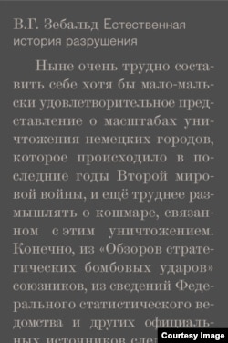 В. Г. Зебальд. "Естественная история разрушения" / Перевод Н. Федоровой. – М.: Новое издательство, 2015.