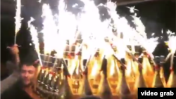 В сети появилось видео того, как официанты разносят шампанское под звуки гимна России.