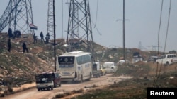 Представитель ООН сообщил, что 50 автобусов и две машины скорой помощи покинули повстанческую зону, а находящаяся в Лондоне Сирийская группа наблюдения за правами человека заявила, что 65 автобусов вывезли 3500 человек.