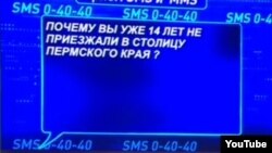 Пока Путин говорит, на экран без фильтра выводят СМСки. Самая ласковая – это будет ли когда-нибудь в стране первая леди? Но подавляющее число – про денежные кошмары. Про то, что квартплата выше зарплаты. А главное – про то, что сколько можно цепляться за власть. Что "три срока президентства – достаточно".