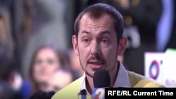 Ведущий "России 1", работающий "на разогреве" трансляции, напирает на открытость Путина неудобным вопросам и отдельно упоминает, что каждый год слово получает корреспондент украинского агентства "Униан" Роман Цымбалюк.