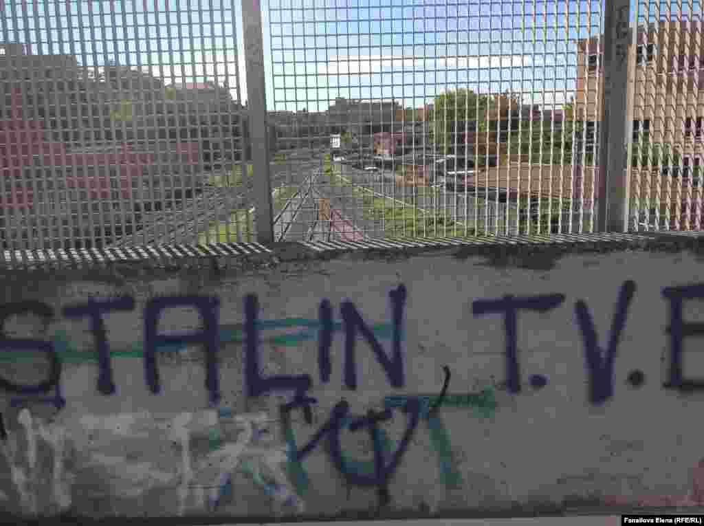 Парадоксальным образом стены пешеходной части моста оказались исписаны граффити "новых левых", где феминистские лозунги соседствуют с апологетикой Сталина и требованиями "свободу Донбассу"