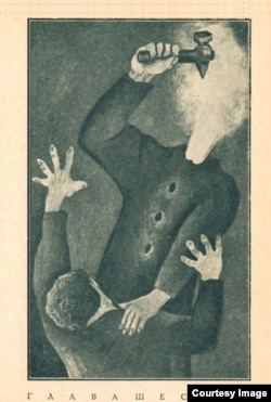 В поэме "Звонок к дворнику" участвуют отрубленная голова поэта, патриарх Тихон, божественная рука с молотком