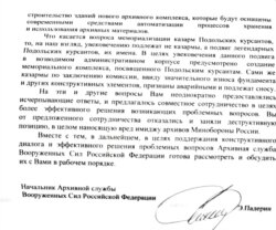 У меня лично есть письма четырех- и пятилетней давности, где сообщалось, что новые корпуса архива, вот эти вот сердюковские, вот-вот будут достроены. Однако в конце концов они были снесены. Уже тогда все знали о том, что они строились с такими ошибками, что не смогут служить. Доверие уже подорвано тем, что сначала миллионы в это вложили, а потом на глазах всего Подольска снесли. Но если вы действительно провели такую комиссию, и там действительно плохой фундамент, ребята, это же не обычные дома! Обнародуйте результаты, давайте сделаем все по-человечески. Потому что вы год назад лично мне врали, что одна из казарм будет сохранена. А сейчас я получаю письмо с однозначным ответом на вопрос о судьбе казарм Подольских курсантов. Начальник Архивной службы Эдуард Падерин четко написал, что они подлежат сносу. Покажите результаты работы этой комиссии, покажите их просто! Мы имеем на это право, потому что это здание имеет отношение ко всем нам.
