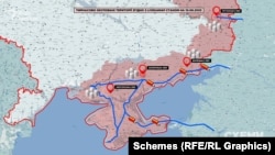 На карте, составленной по данным Института изучения войны, это отражено как контрнаступление вооруженных сил Украины в районе Херсона. По словам Алексея Арестовича, часть украинских военных находится на расстоянии 15 километров от оккупированного Херсона. При этом дальнейшее наступление может занять большое количество времени.