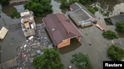В Херсонской области, по данным властей, к утру четверга средний уровень затопления превышает 5,5 метра, в зоне бедствия свыше 600 квадратных километров, преимущественно на левобережье.