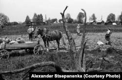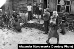 В 12 лет родители подарили ему на день рождения настоящую фотостудию: весь комплект, от фотоаппарата до химикатов. Киселёвку он снимал с конца 1970-х годов, продолжая делать это и сейчас. На черно-белых фотографиях – работы в поле и по хозяйству, иконы в рушниках, праздничные халаты в цветочек, самогонные аппараты, застолья. Киселёвцы старые, молодые, расслабленные и сосредоточенные. А потом – радиация, отселение и те самые дни, когда родные дома разрушили и закопали в землю.