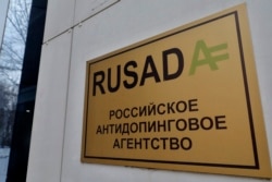 Логотип WADA на легкоатлетических соревнованиях "Русская зима", февраль 2020 года