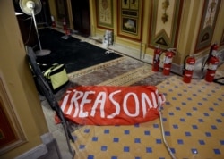 Также за несколько часов до штурма бывшая военная заявила в соцсетях, что вице-президент Майк Пенс и председатель Верховного суда США Джон Роберт должны подать в отставку по причине "государственной измены" и за то же следует предъявить обвинения бывшему генпрокурору США Роду Розенстайну. Плакаты с надписью Treason (государственная измена) сторонники Трампа принесли с собой в Конгресс: