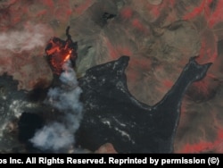 Этот месяц ознаменовался в Европе и Северной Африке еще одним катаклизмом – небывалой жарой и вызванными ей лесными пожарами, которые затронули Францию, Испанию, Португалию, Грецию. На этом снимке – дым от лесных пожаров в районе марокканского города Уэззан, запечатлённый спутником 14 июля.